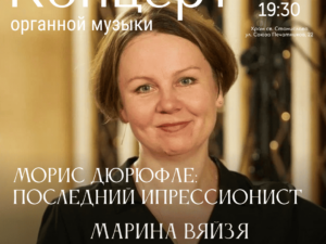 8 ноября, суббота, 19:30 Храм Св. Станислава (уд. Союза Печатников, 22) Концерт органной музыки МОРИС ДЮРЮФЛЕ: ПОСЛЕДНИЙ ИПРЕССИОНИСТ Морис Дюрюфле Лауреат международных конкурсов МАРИНА ВЯЙЗЯ (орган, Санкт-Петербург) «Органные вечера в Старой Коломне» — это захватывающее путешествие в мир органной музыки с известными органистами Санкт-Петербурга и всей России! Приглашаем жителей и гостей города на органный концерт […]