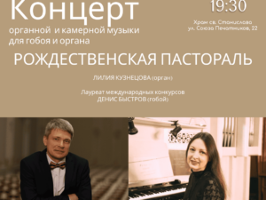 XII ОРГАННЫЙ РОЖДЕСТВЕНСКИЙ ФЕСТИВАЛЬ ADESTE FIDELES 2025-2026 27 декабря, суббота, 19:30 Храм Св. Станислава (ул. Союза Печатников, 22) Концерт органной и камерной музыки для гобоя и органа РОЖДЕСТВЕНСКАЯ ПАСТОРАЛЬ И.С. Бах, Ж.-Б. Лойе, И.Л. Кребс, С. Франк, Й.Г. фон Райнбергер, А. Пярт ЛИЛИЯ КУЗНЕЦОВА (орган) Лауреат международных конкурсов ДЕНИС БЫСТРОВ (гобой) (Санкт-Петербург) «Органные вечера в [...]