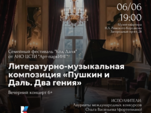 В день рождения А. С. Пушкина мы приглашаем Вас на литературно-музыкальный вечер, где расскажем об истории творческого общения Даля и Пушкина, отдадим дань их современникам П. Вяземскому, В. Жуковскому, И. Вильегорскому, Е. Баратынскому, Е. Ростопчиной, Н. Кукольнику. Их поэзия вдохновляла не одно поколение русских композиторов: М. Глинку и Д. Бортнянского, Н. Римского-Корсакова и Ц. Кюи, С. Прокофьева. Красота и стройность русского классического стиха отразилась в прекрасной музыке той эпохи, которую вы услышите на концерте в рамках Семейного фестиваля «Код Даля» при поддержке Президентского фонда культурных инициатив.