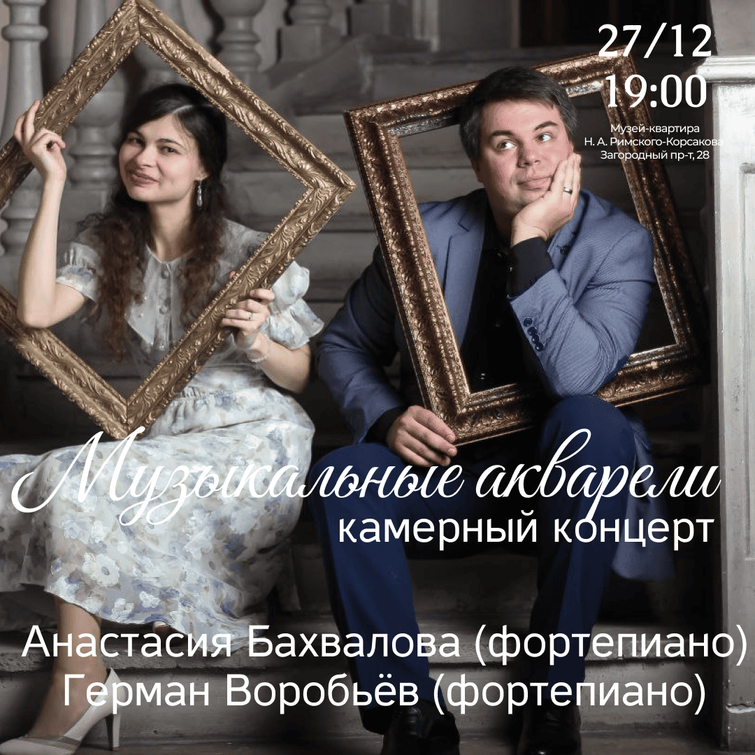 Творческий центр «Арт-паркИНГ» приглашает в уютный зал Музея-квартиры Н. А. Римского-Корсакова. В предновогодний вечер мы подготовили яркую программу фортепианной классики в исполнении талантливых музыкантов. Вас ждут необычные ритмы венгерской музыки Франца Шуберта, глубокие музыкальные картины Макса Регера, изысканная простота пьес Игоря Стравинского, нежная лирика сюиты Габриэля Форе и энергичная соната Франсиса Пуленка. Энергия четырехручного исполнения на рояле зарядит на активный новый год!